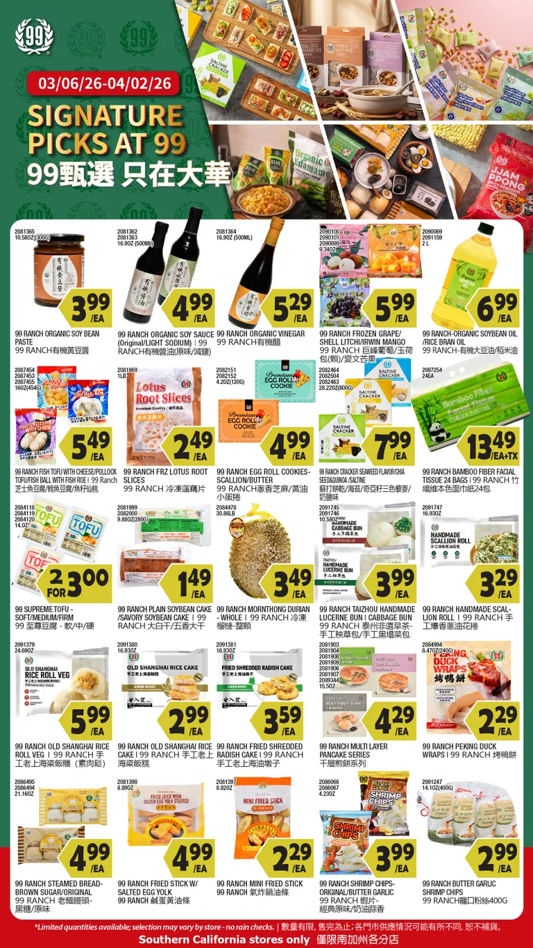 You’re viewing the 99 Ranch Market weekly ad, valid from 03/06/2026 to 04/02/2026. Visit our website regularly to stay up to date with the latest deals and promotions from your favorite stores.