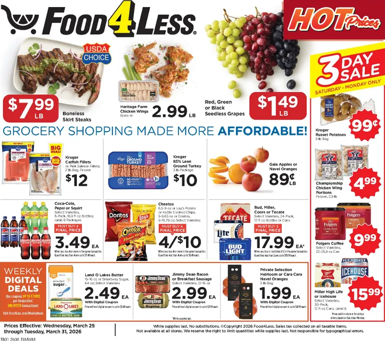 You’re viewing the Food 4 Less weekly ad, valid from 03/25/2026 to 03/31/2026. Visit our website regularly to stay up to date with the latest deals and promotions from your favorite stores.