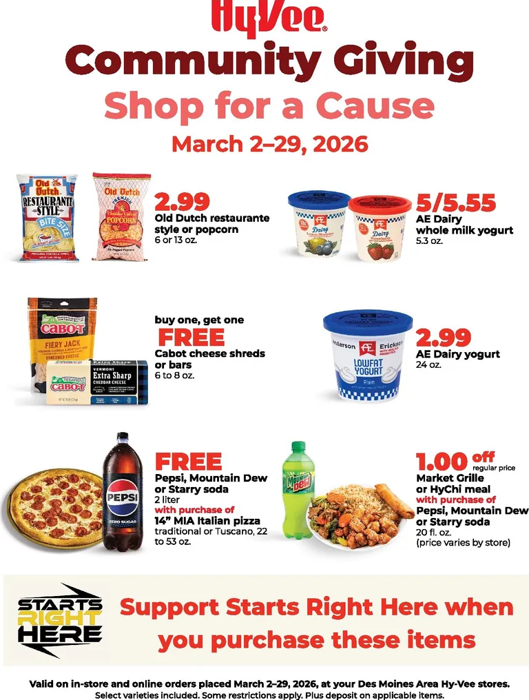 You’re viewing the Hy Vee weekly ad, valid from 03/02/2026 to 03/29/2026. Visit our website regularly to stay up to date with the latest deals and promotions from your favorite stores.