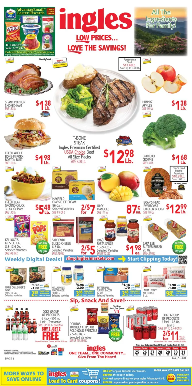 You’re viewing the Ingles Markets weekly ad, valid from 03/25/2026 to 03/31/2026. Visit our website regularly to stay up to date with the latest deals and promotions from your favorite stores.