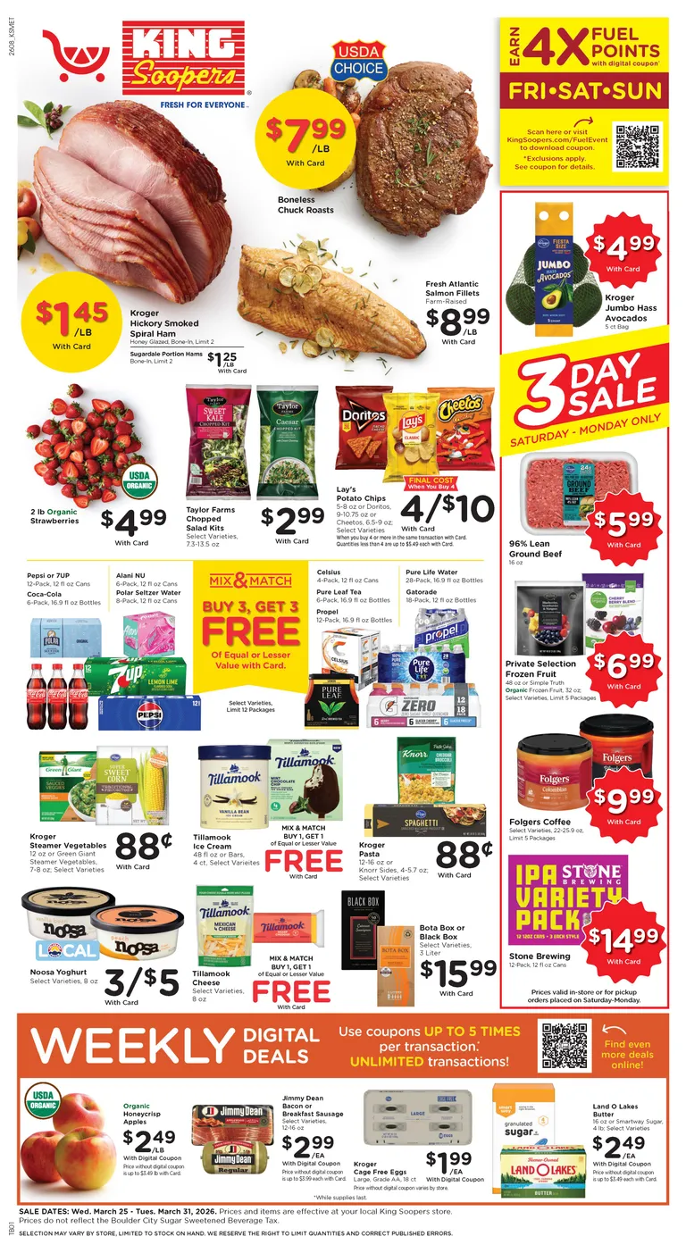 You’re viewing the King Soopers weekly ad, valid from 03/25/2026 to 03/31/2026. Visit our website regularly to stay up to date with the latest deals and promotions from your favorite stores.