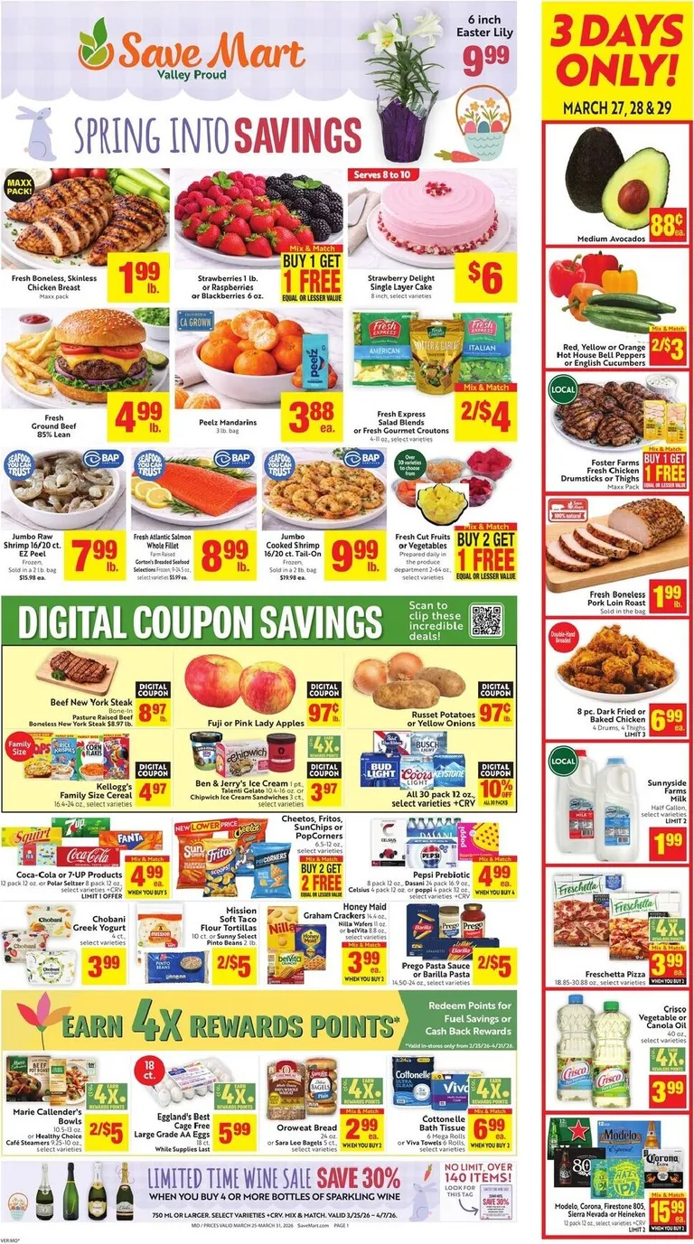 You’re viewing the Save Mart weekly ad, valid from 03/25/2026 to 03/31/2026. Visit our website regularly to stay up to date with the latest deals and promotions from your favorite stores.