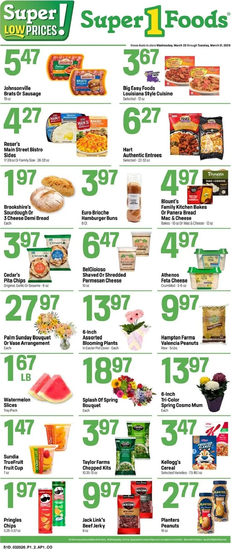 You’re viewing the Super 1 Foods weekly ad, valid from 03/25/2026 to 03/31/2026. Visit our website regularly to stay up to date with the latest deals and promotions from your favorite stores.