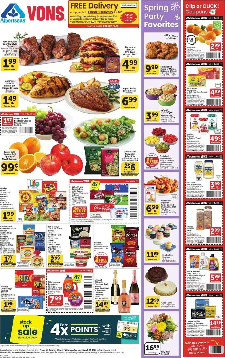 You’re viewing the Vons weekly ad, valid from 03/25/2026 to 03/31/2026. Visit our website regularly to stay up to date with the latest deals and promotions from your favorite stores.