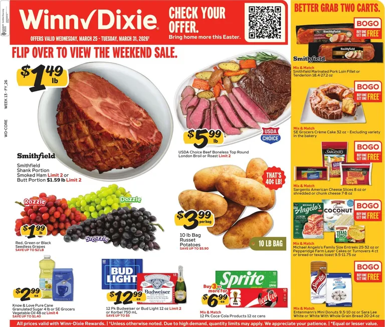 You’re viewing the Winn-Dixie weekly ad, valid from 03/25/2026 to 03/31/2026. Visit our website regularly to stay up to date with the latest deals and promotions from your favorite stores.